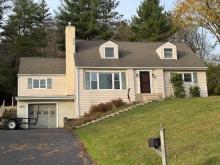 Spacious home located on .84 acres with a circular blacktop driveway. This property overlooks the Village with a wooded lot behind the home, an above-ground swimming pool and storage building. Enter this home from the front deck into the foyer with a closet. A large picture window brightens the living room with a gas fireplace and hardwood floors. The formal dining area has French doors that open onto the back deck with views of the woods and coy pond with fountains and waterfalls. The eat-in kitchen includes a refrigerator, garbage disposal, dishwasher, electric cooktop and built-in oven and leads to the mudroom and side door. On the main floor you will also find the spacious primary bedroom, a second bedroom, a full bath with heated ceramic tile flooring, a walk-in ceramic tile shower and two hall closets. Upstairs you will find 2 additional bedrooms, an office and a full bath. The full basement includes a family room with a wet bar, workshop, storage room and a door that leads to the 1 car garage.
