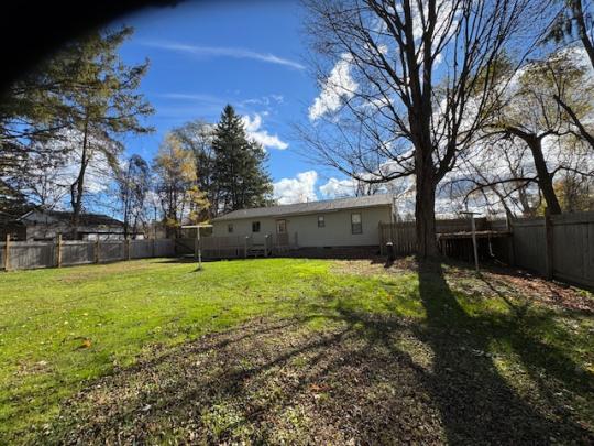 Remodeled ranch home built in 2005 with a large fenced backyard and storage shed. Updates to this home in 2025 include new architectural shingles, new forced air furnace, new flooring and fresh paint throughout the main floor. Enter this home into the living room with a large window and view of Phillips Creek. The open kitchen area has lots of counter space and a new stainless refrigerator, dishwasher, microwave and gas stove/oven. A rear door leads to the large deck and fenced backyard with storage shed. On one side of the home you will find the primary bedroom with a walk-in closet and a full remodeled bath. Walk back thru the living room to the other side of this home to find a full remodeled bath with double sinks and 3 nice sized bedrooms with closets and 2 hall linen closets. The full partially finished basement includes a family room, laundry room and 3 additional rooms that offer many options. This home is located within walking distance of the Genesee River great for fishing and kayaking and short driving distance to 100's of acres of State Land for Hiking and country skiing.